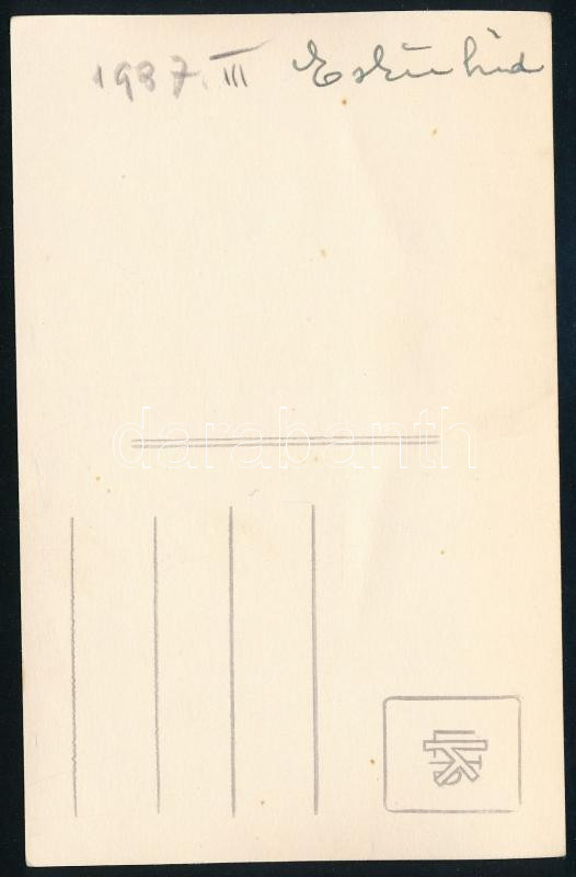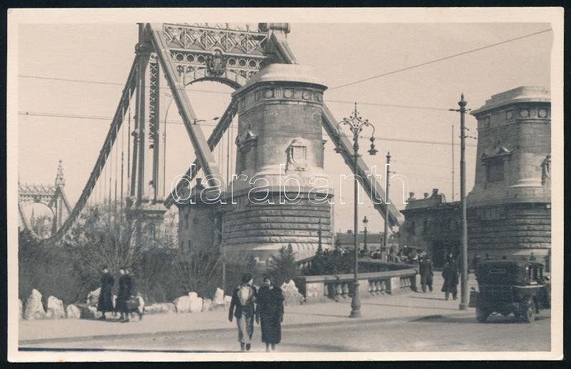 1937 Orphanidesz János (1876-1939): Budapest, Eskü tér, Erzsébet híd hídfője, hátoldalon feliratozott fotó, jelzés nélkül, 9×14 cm