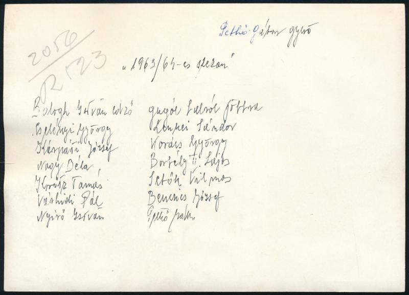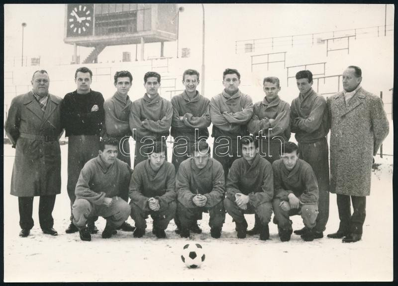 1963/64 UTE csapatfotó, téli felkészülés, hátoldalon a csapattagok nevével, 13×18 cm