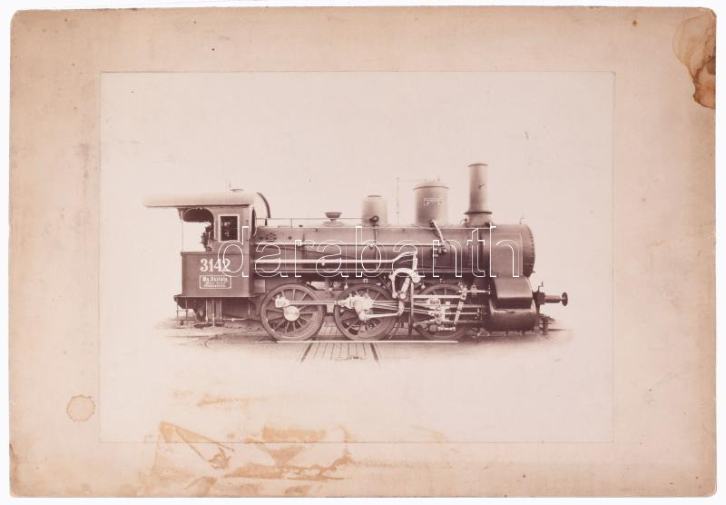 Ca 1900 MÁV 3142 mozdony, lokomotív nagyméretű fotója kartonon / Hungarian Railways Locomotive, large original photo 33x25 cm