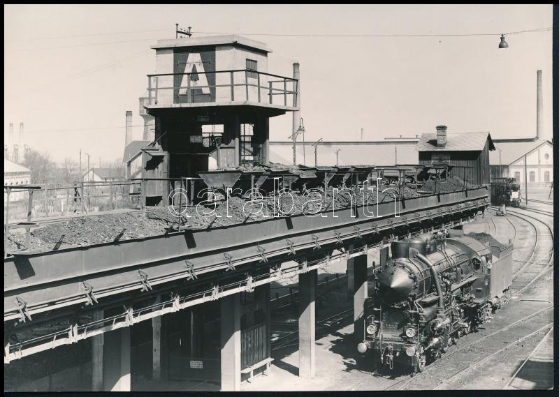 MÁV mozdony feltöltése szénnel, fotó, Fialovits Béla felvétele, 12×17 cm