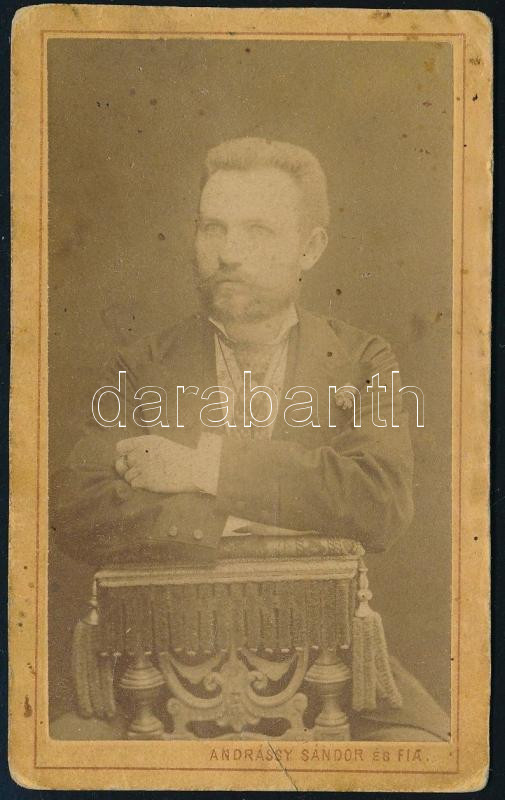 cca 1870-1880 Férfiportré, vizitkártya Andrássy Sándor és Fia (Rozsnyó és Rimaszombat) műterméből, kissé viseltes állapotban, 10,5x6,5 cm (Ritka!)