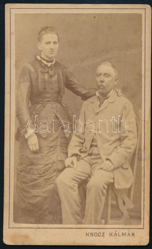 cca 1870 Dingesz Anna és férje, vizitkártya Knocz Kálmán körmendi műterméből, 11x6,5 cm (Ritka!)