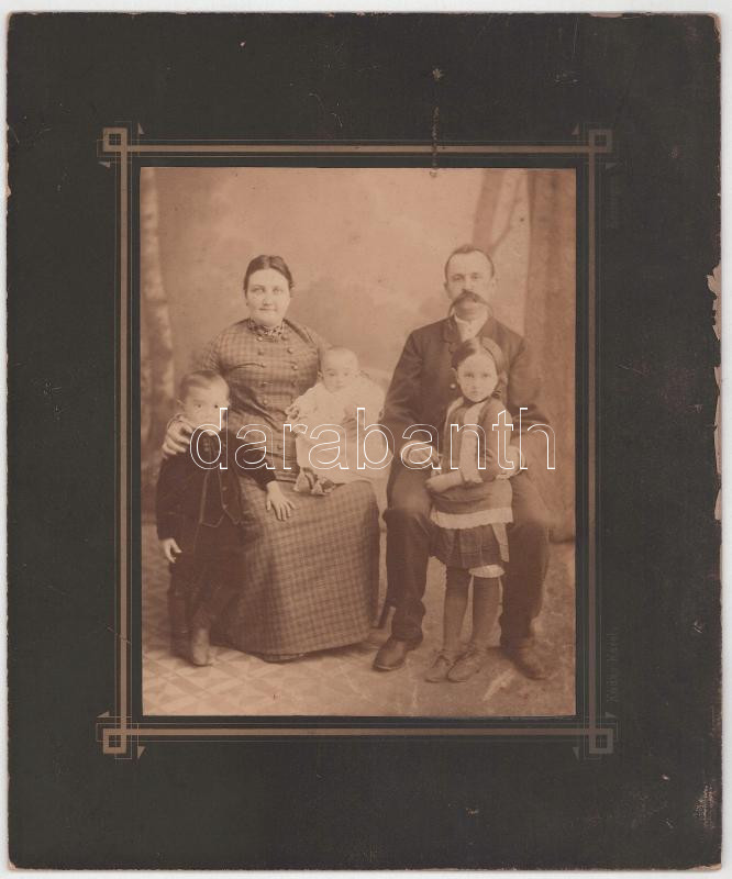 cca 1890 Családi fotó, kartonra kasírozott fotó Kádas Károly esztergomi műterméből, kissé sérült, 18,5x15 cm, karton: 29,5x24,5 cm
