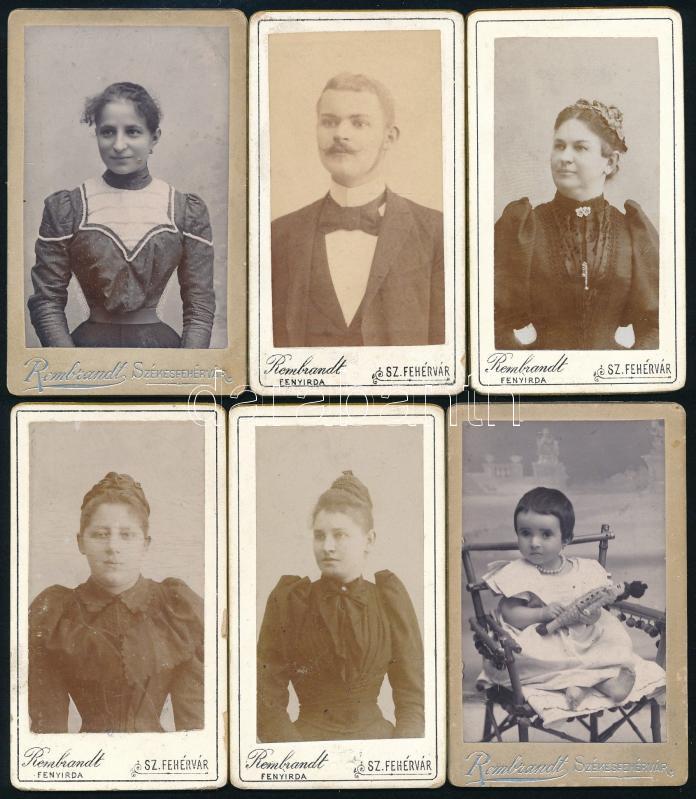 cca 1890 Női és kislány portrék, 6 db mignon fotó Rembrandt székesfehérvári műterméből, 8×4,5 cm