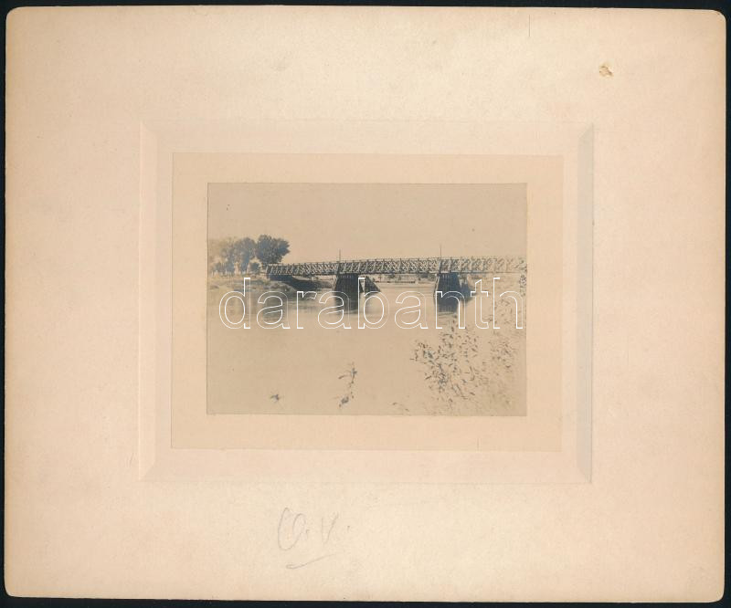 cca 1900 A Maros hídja Aradon (Erdély), kartonra kasírozott fotó, hátoldalon feliratozva, szép állapotban, 8×10,5 cm