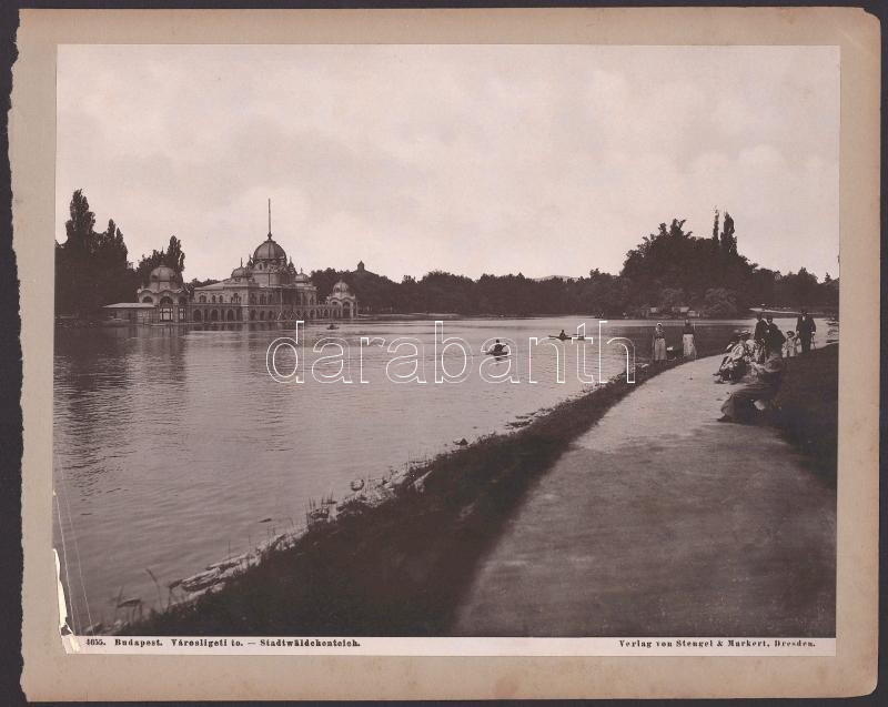 cca 1900 Budapest, Városligeti-tó, papírlapra ragasztott fotó, kiadja: Stengel & Markert, sérüléssel, 22×28 cm