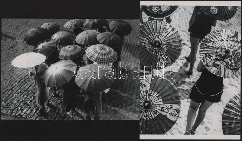 cca 1935 Munkácsi Márton (1896-1963) magyar - amerikai fotóriporter és fotóművész felvételei ("Esernyők és napernyők"), 2 db modern nagyítás, jelzés nélkül, 21x15 cm és 15x21 cm