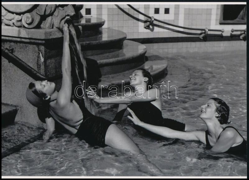 cca 1937 Budapest, szirének a Gellért fürdőben, Szöllősy Kálmán (1887-1976) budapesti fotóművész felvétele (valószínűleg a leányai, akik sok más felvételen is a modelljei voltak), 1 db modern nagyítás, jelzés nélkül, 15x21 cm