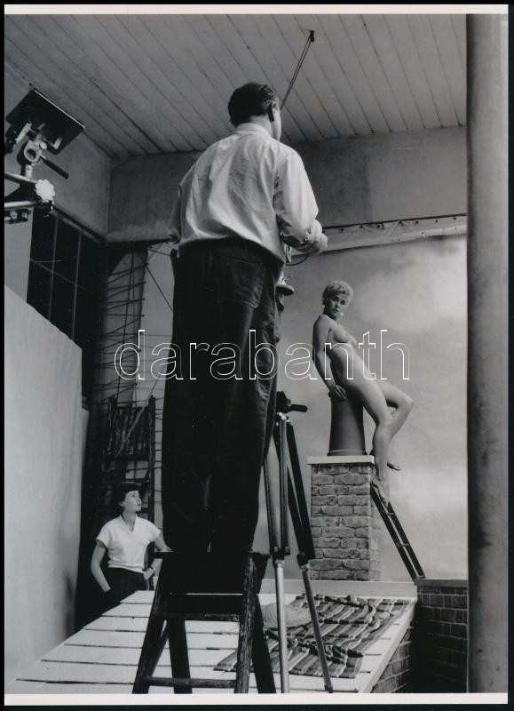 cca 1950 Glass Zoltán (1902-1982) magyar - angol fotóművész a műtermében dolgozik, szolidan erotikus felvétel, 1 db modern nagyítás, jelzés nélkül, 21x15 cm