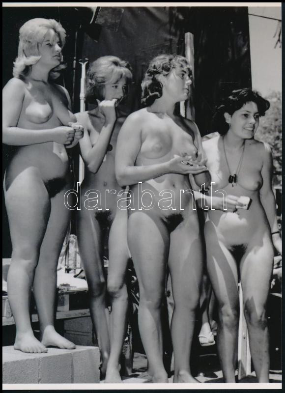 cca 1958 "Izgatott várakozás a nudi szépségverseny eredményhirdetése előtt", szolidan erotikus felvétel, 1 db modern nagyítás, jelzés nélkül, 21x15 cm