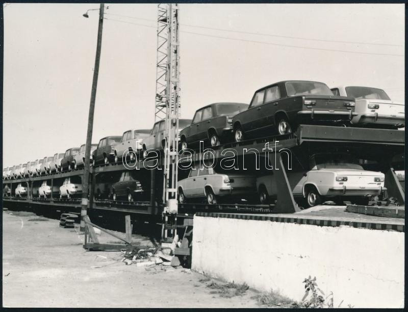 cca 1980 Új autók szállítása vasúti úton, sajtófotó, 9×12 cm
