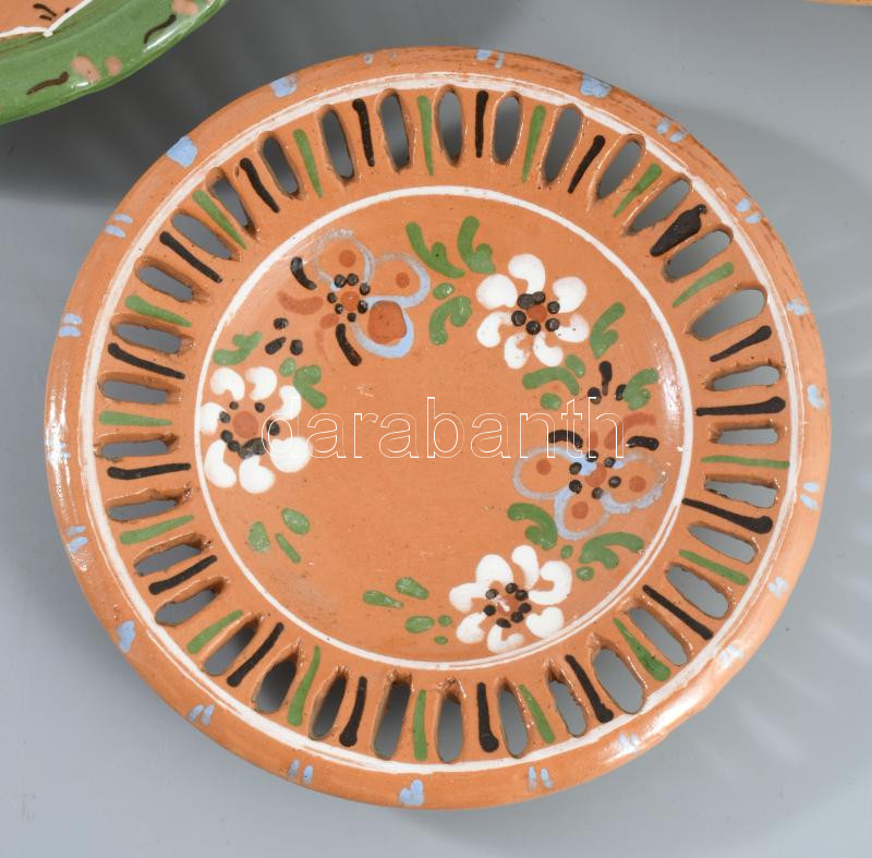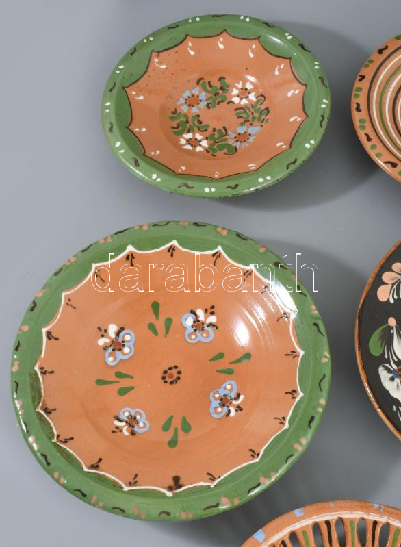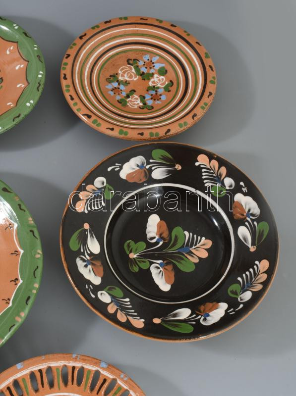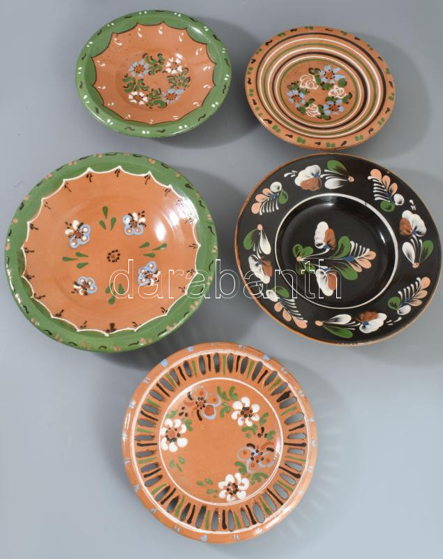 5 darab népi kerámia tányér, d: 24 cm alatt