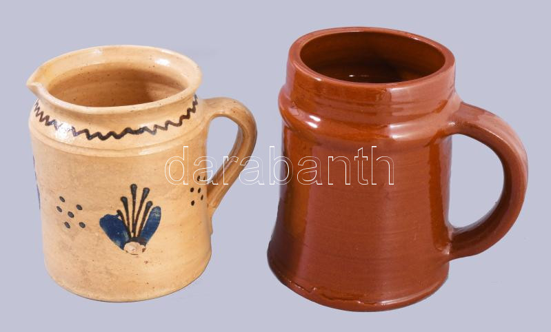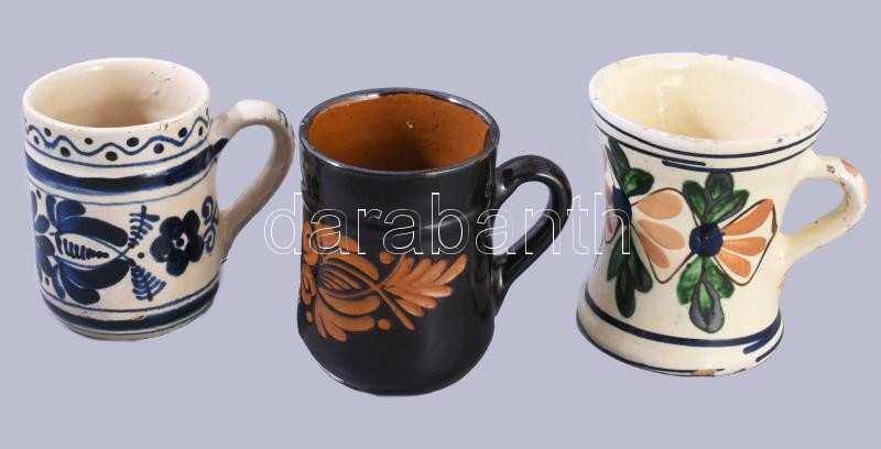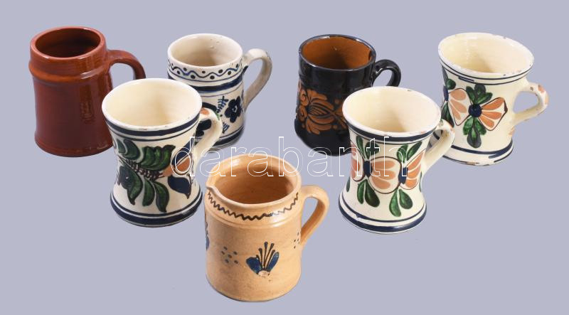 7 db Korondi bögre. Mázas kerámia, kézzel festett, egyiken másikon minimális pattogázásokkal, közötte régiek is.