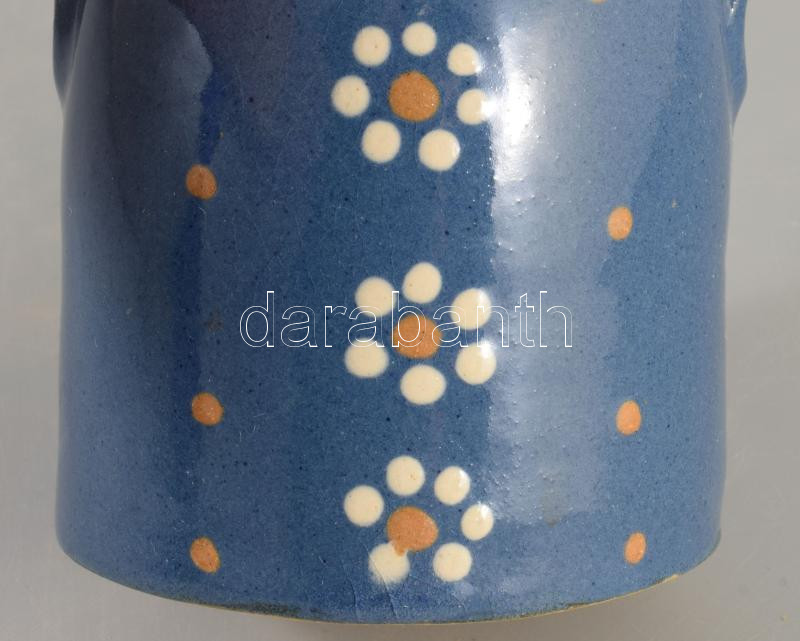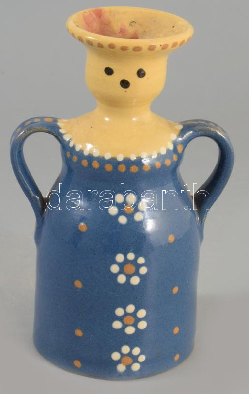 Hódmezővásárhelyi figurális gyertyatartó, jelzés nélkül, m: 15,5 cm