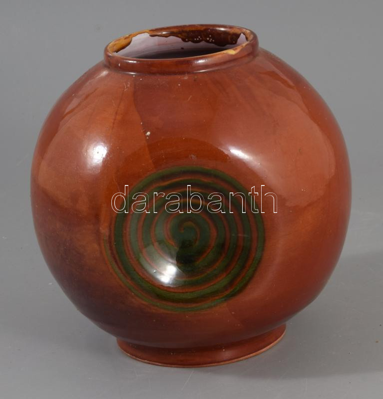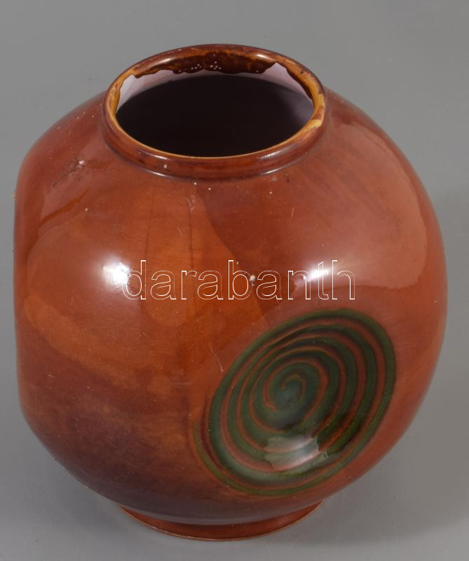 Jelzés nélkül: Retro váza, mázas kerámia, kézzel festett, jelzett, hibátlan 15 cm