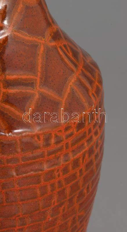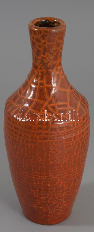 Repesztett vázas mázas kerámia váza, kézzel festett, jelzett, hibátlan 22 cm