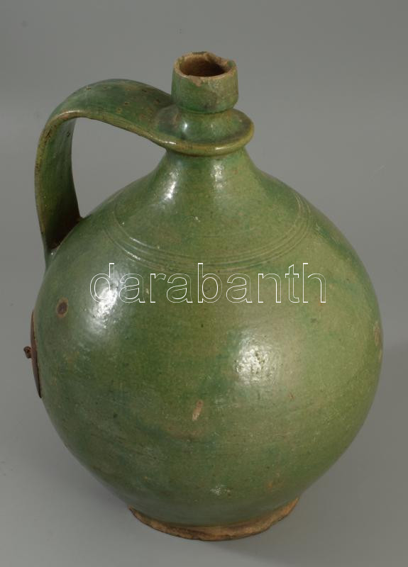 Vizeskorsó. Mázas cserép, Felvidék XIX, sz. korabeli javítással, m: 31 cm