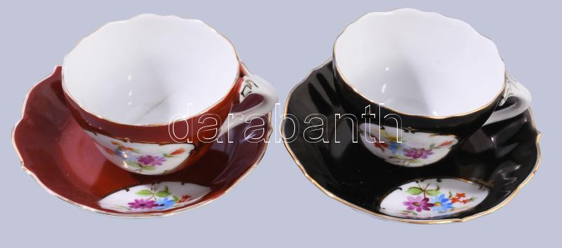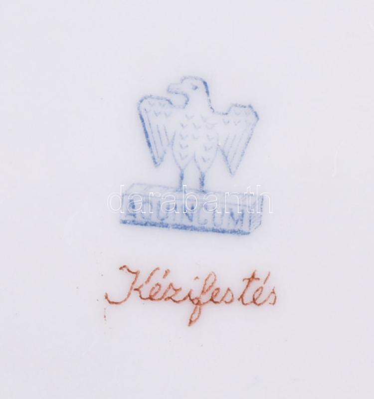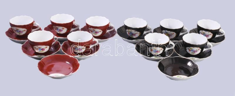 Aquincum mokkás csésze készlet 6+6 db alj, 5+5 db csésze. Kézzel festett, jelzett, hibátlan.