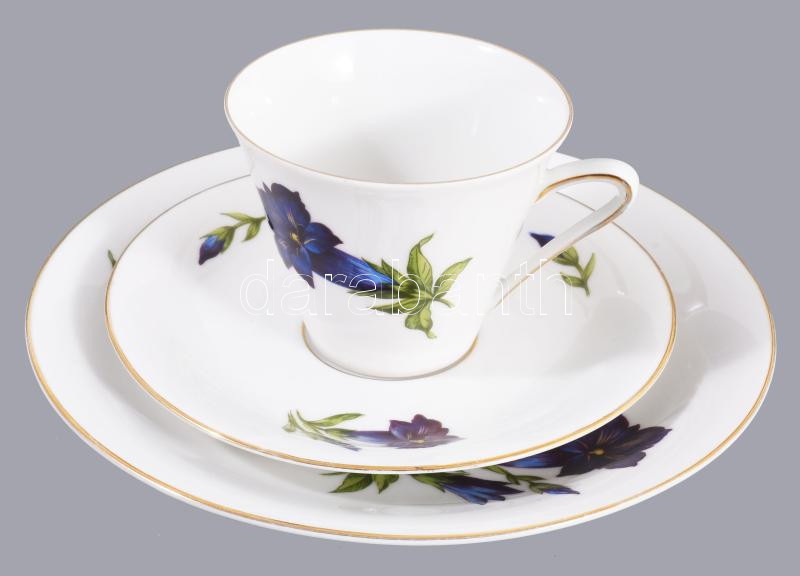 Bavaria tárnics mintás vékonyporcelán egyszemélyes reggeliző készlet, csésze alátéttel és desszertes tányér. Jelzett, hibátlan, d: 19,5 cm