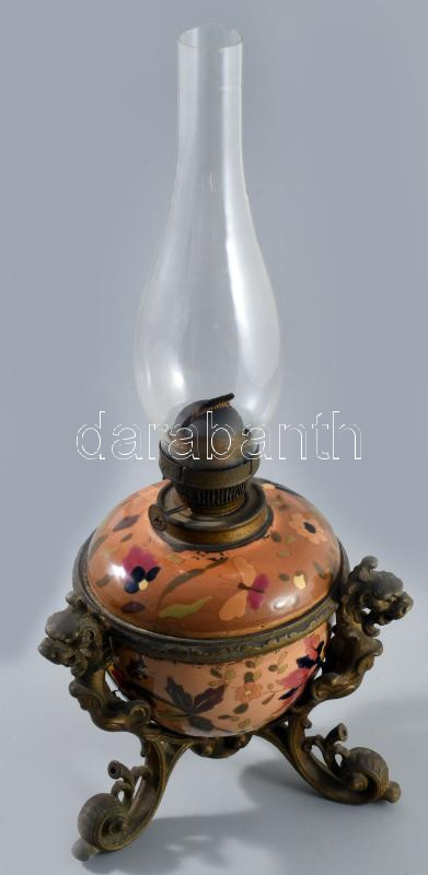 Ditmar asztali petróleum lámpa, sérült cilinder, jelzés nélkül, m: 43 cm