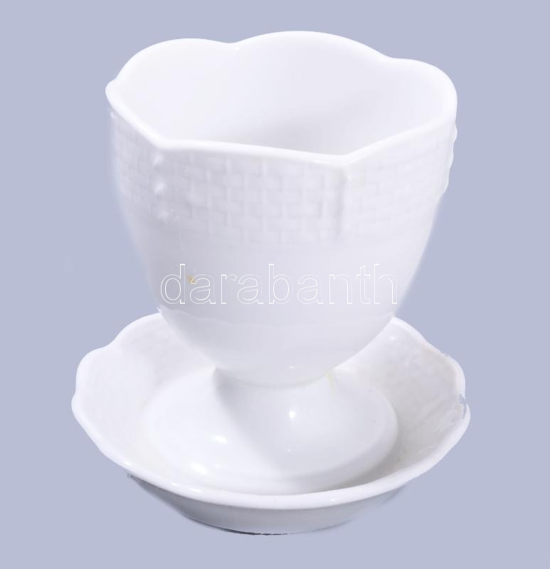 Herendi 3 db tojás tartó és egy mokkás csésze, aljjal, fehér, jelzett, sérült