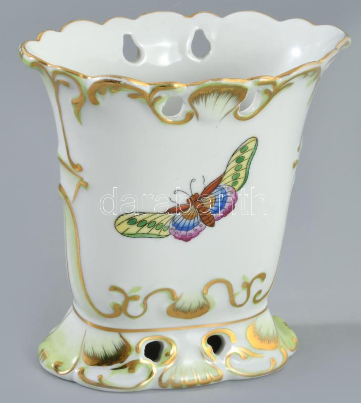 Herendi Viktória mintás laposváza, jelzett, kis kopással, m: 11,5 cm