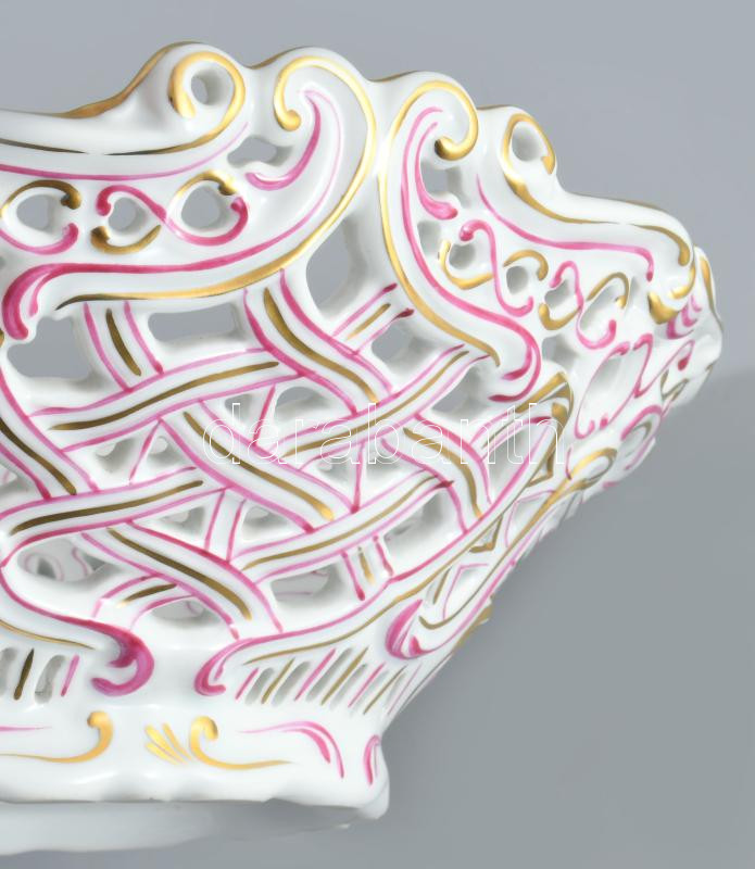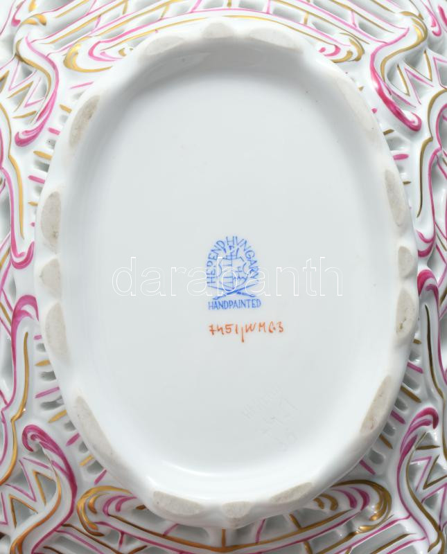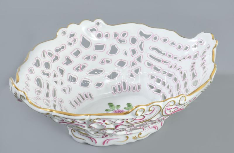 Herendi Waldstein mintás áttört kínáló, jelzett, lepattanással, 26x21 cm