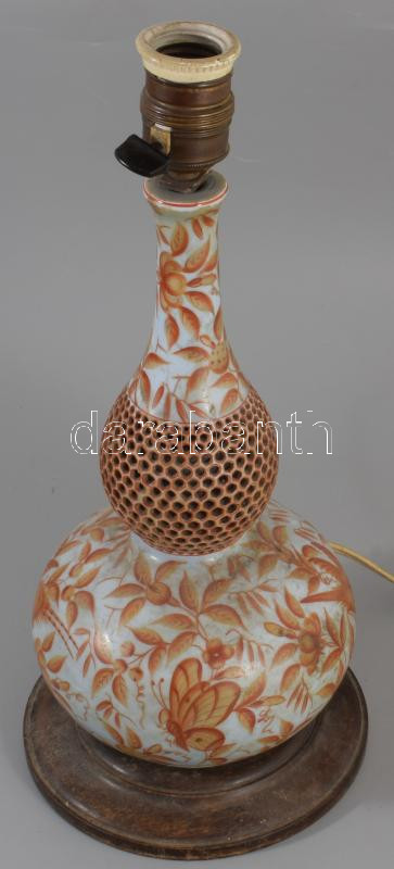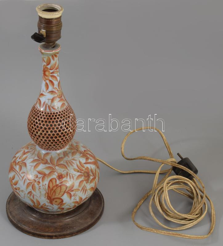 Herendi Zova mintás asztali lámpa test. Fa szerelékkel, m: 36 cm