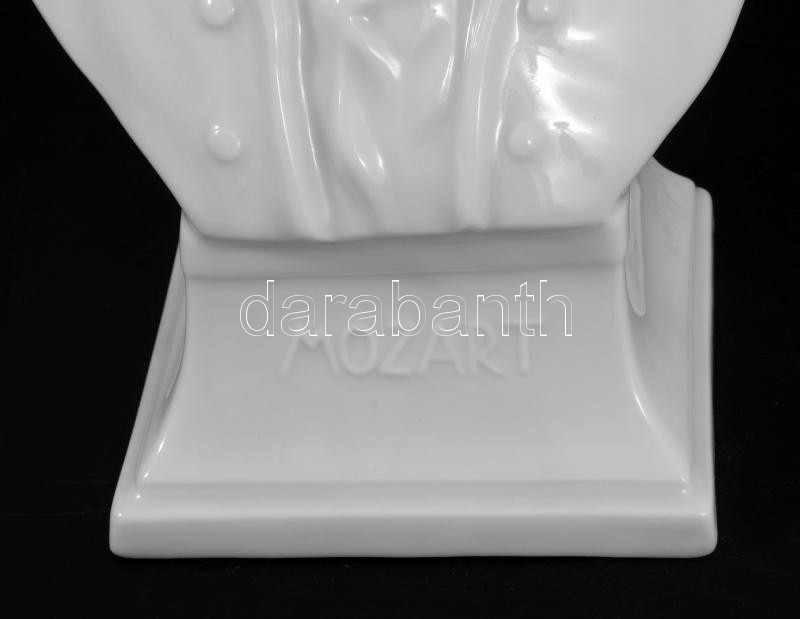 Herendi fehér mázas porcelán Mozart büszt, jelzett, biszkvit és fehér mázas, hibátlan, m: 19,5 cm