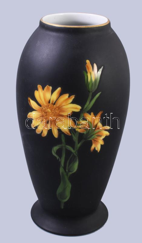Herendi margaréta mintás fekete váza. Kézzel festett, jelzett, hibátlan 19 cm