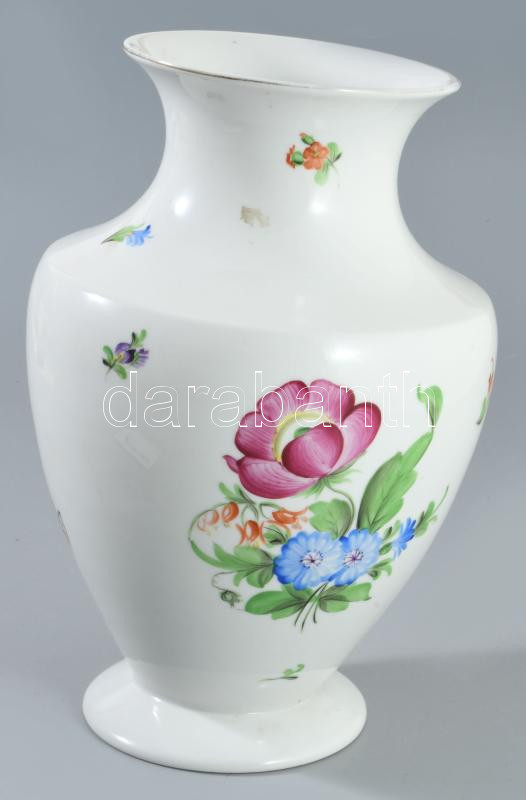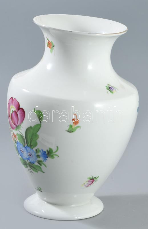 Herendi óherendi virágmintás váza, jelzett, kis kopással, m: 23,5 cm