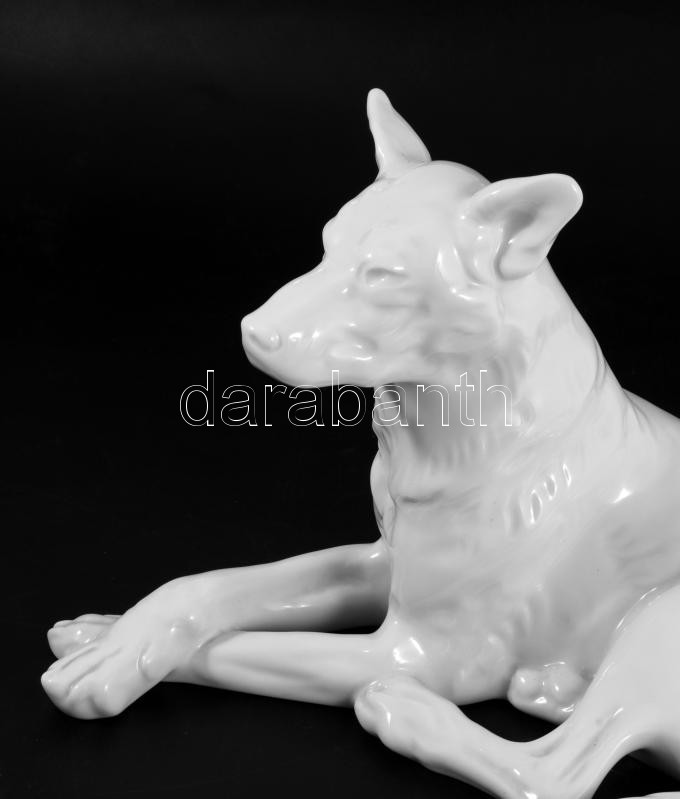 Herendi porcelán kutya, fehér mázas, jelzett, hibátlan, 18x30 cm