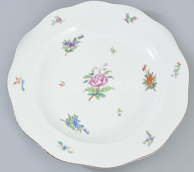 Herendi virág- és fácánmintás kínáló, jelzett, hibátlan, d: 33 cm