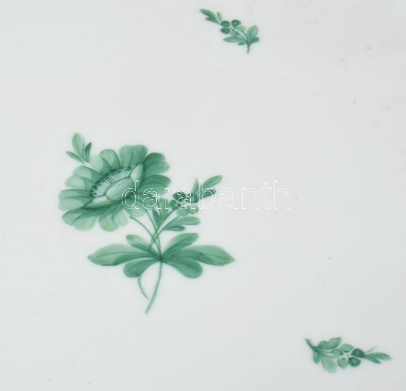 Herendi zöld virágmintás kínáló, jelzett, hibátlan, 26x20 cm