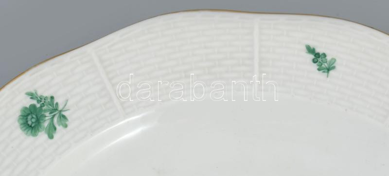 Herendi zöld virágmintás kínáló, jelzett, hibátlan, d: 29 cm