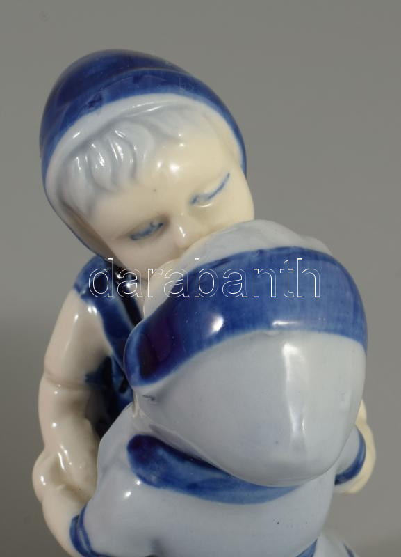 Holland szerelmespár szobor, hibátlan, kobaltkék festéssel, m: 10 cm