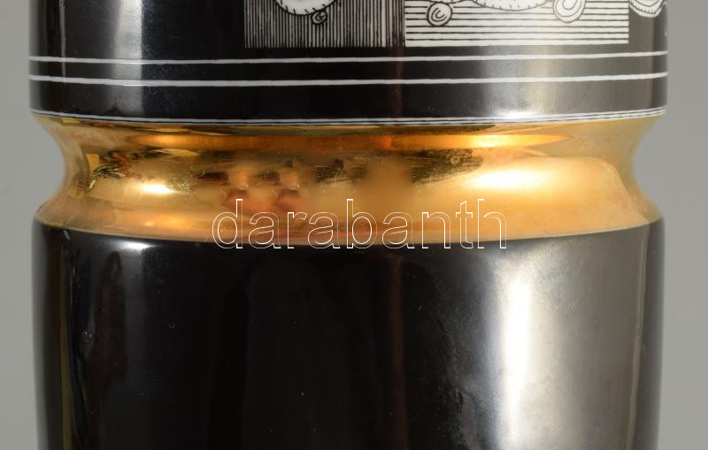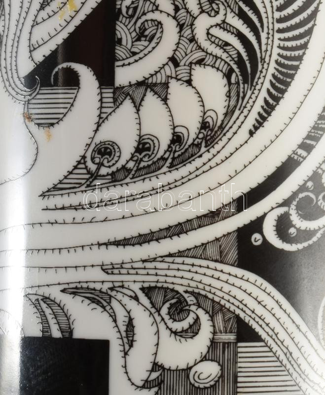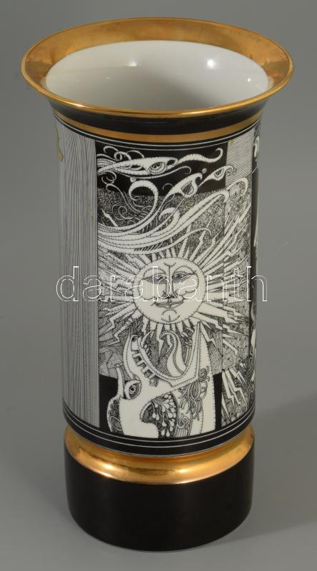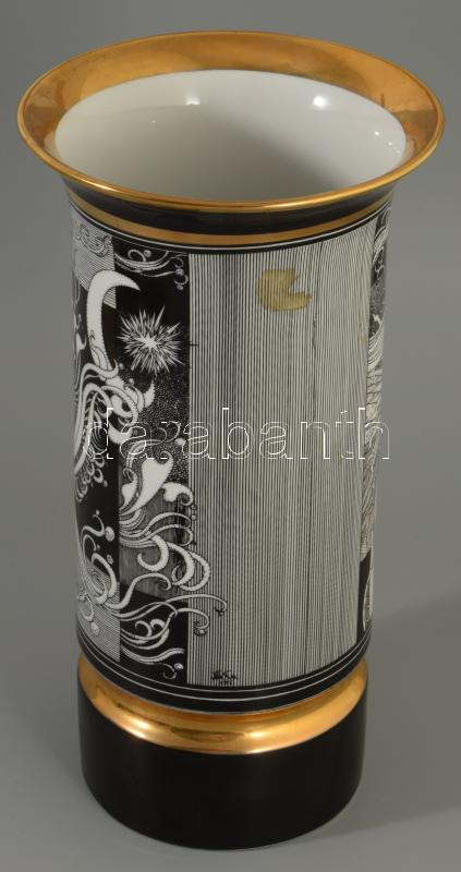 Hollóházi Szász Endre által tervezett mintával díszített porcelán váza. Matricás, jelzett, m: 20 cm