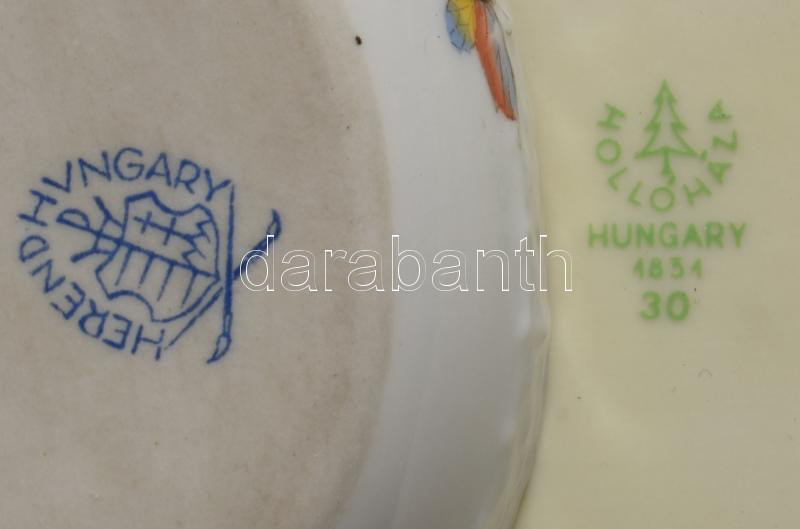 Hollóházi hamuzó h: 17 cm + sérült Herendi ékszeres edény h: 7 cm
