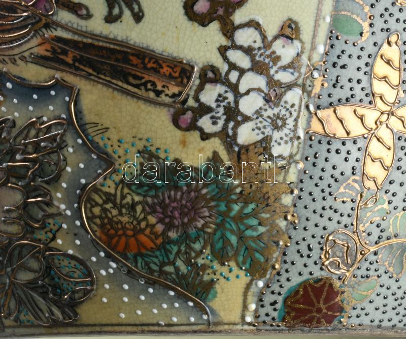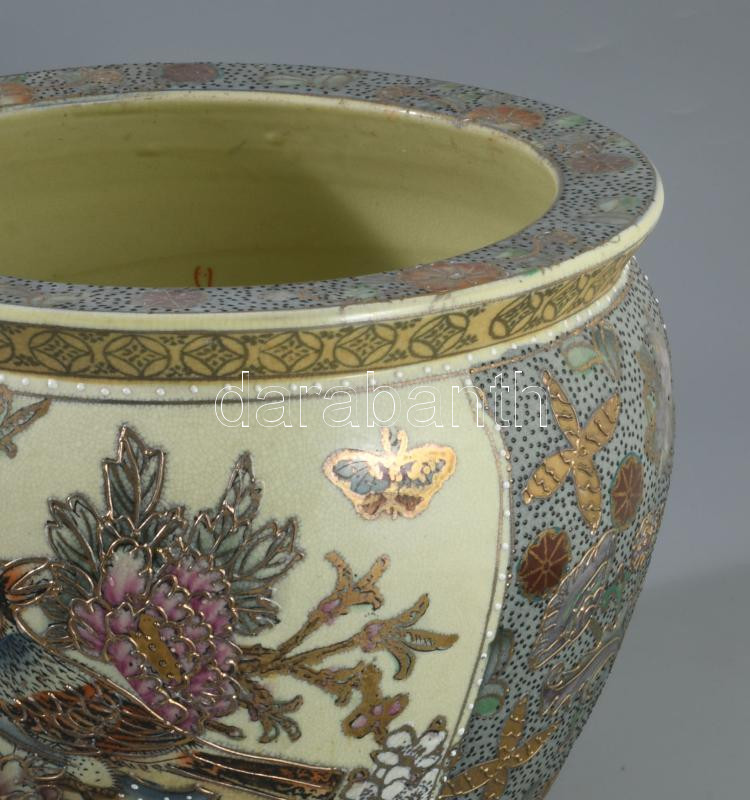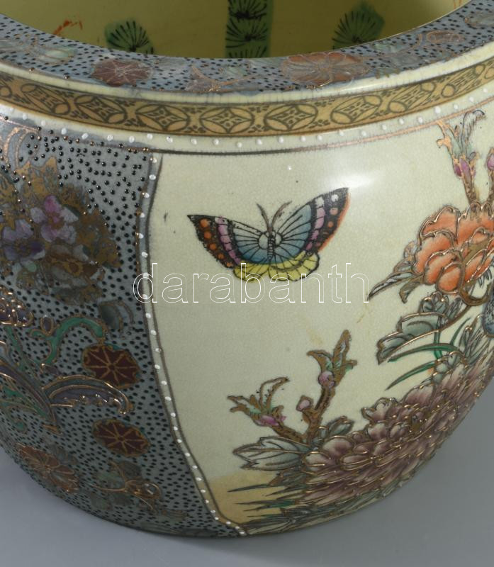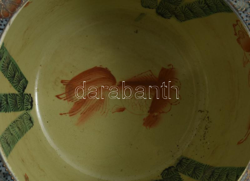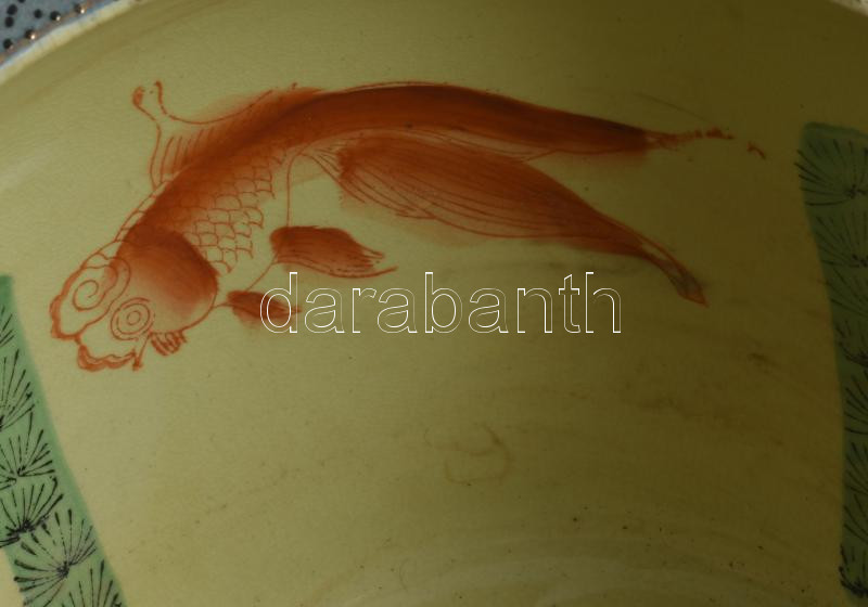 Kínai aranyhal tartó edény, kívül-belül kézzel festett, jelzett, hibátlan, d: 28 cm, m: 20 cm