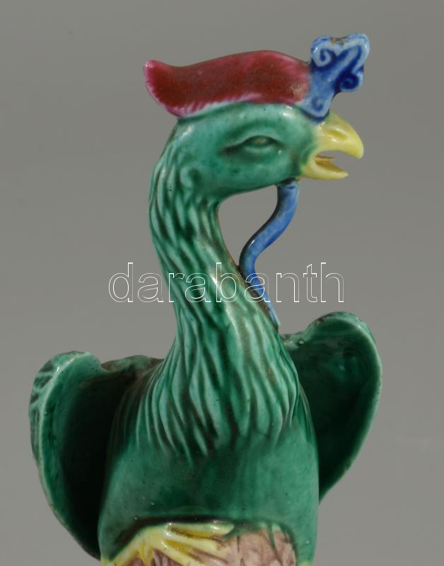 Régi kínai madár szobor, jelzett, nyelve kissé sérült, m: 16 cm