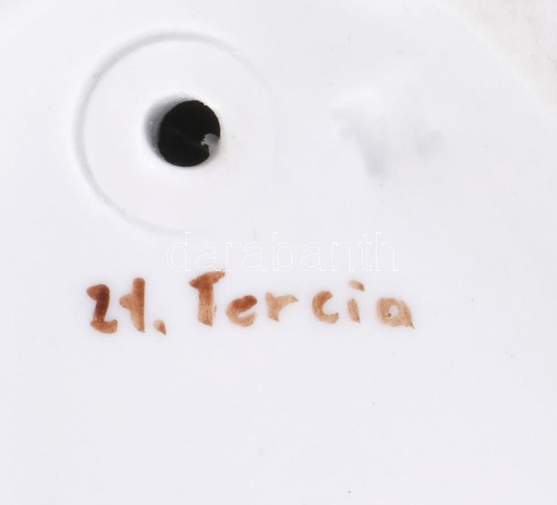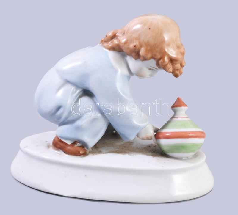 Zsolnay búgócsigás lány Terv: Sinkó. Kézzel festett, jelzett, 16x12 cm