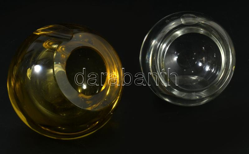 2 darab antik fazettált gömb alakú hamuzó, m: 8 cm alatt