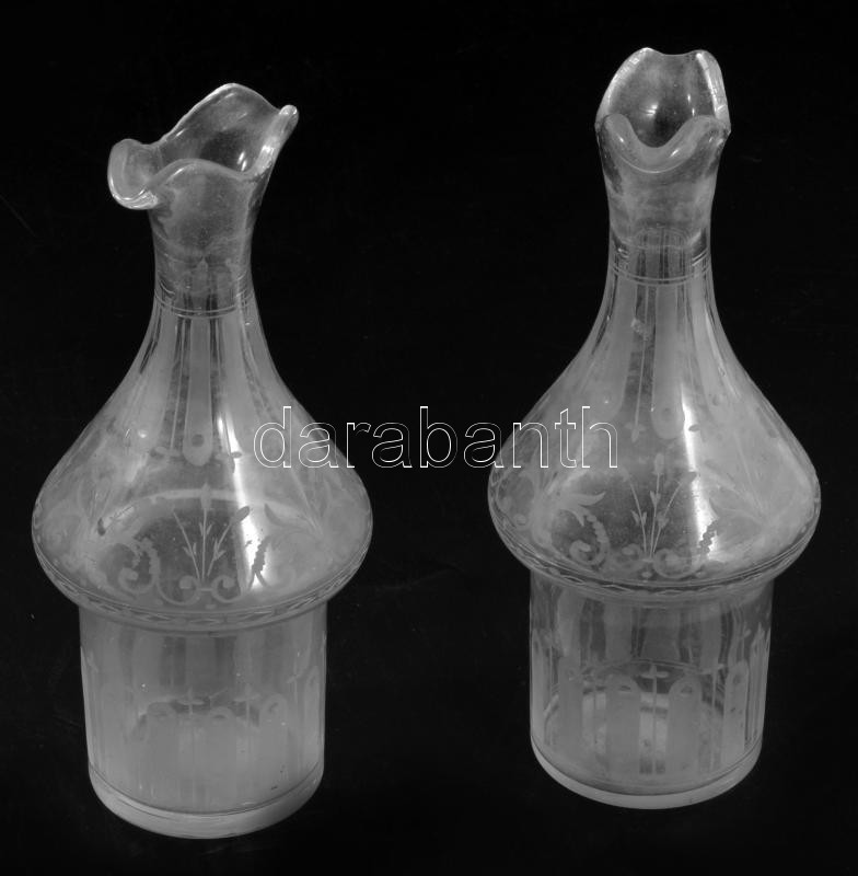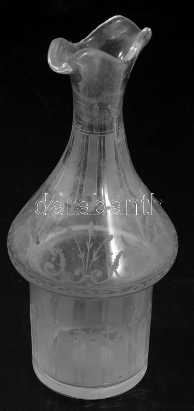 Antik olaj-ecet kínáló üveg, csiszolt mintával, m: 15 cm