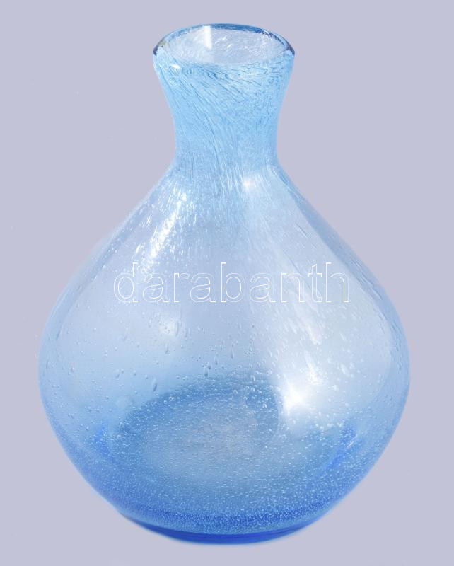 Buborékos kék üveg váza. Anyagában színezett, formába öntött, hibátlan 20 cm