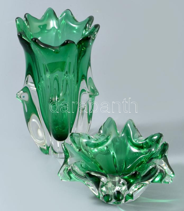 Csehszlovák váza és ékszeres edény, jelzett, hibátlan, m: 13 cm