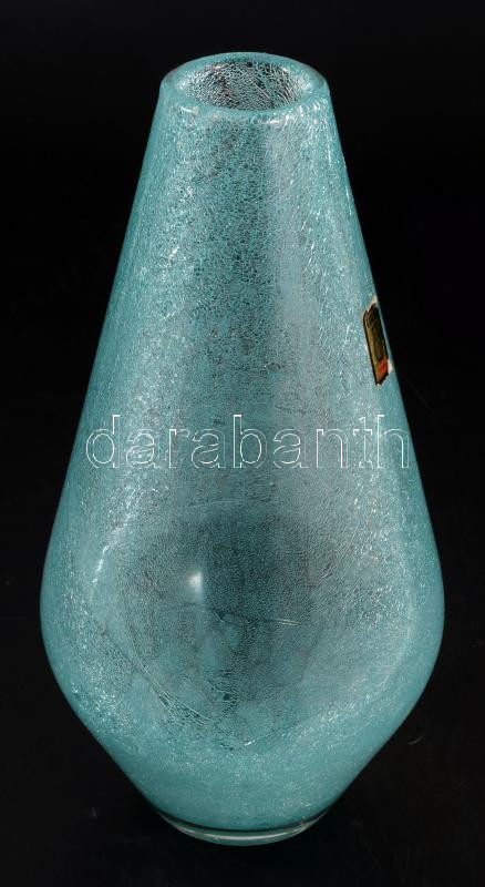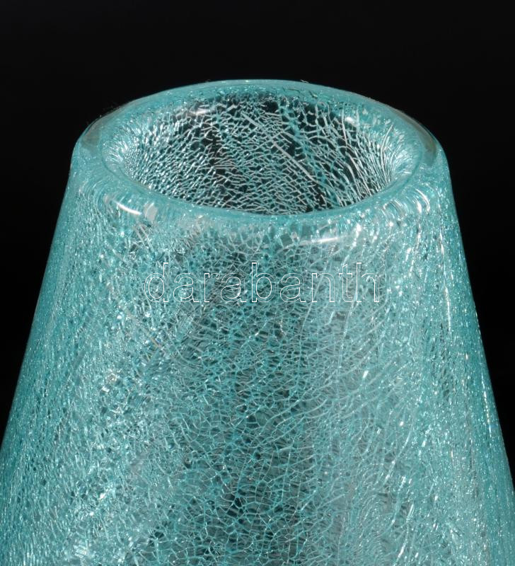 Karcag Berekfürdői krakléüveg hengerváza, jelzett hibátlan, m: 21 cm