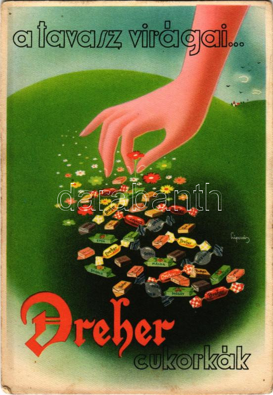 A tavasz virágai... Dreher cukorkák. Klösz György és fia / Hungarian sweets advertisement s: Lipcsei (fl)