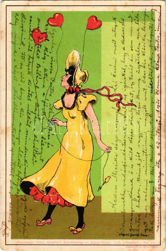 1899 Lady art postcard. Nürnberg Theo Stroefer's Kunstverlag. Aquar. Postk. Coll. Starcke No. 22. Art Nouveau s: C.A. Hans Starcke-Jena (fa)