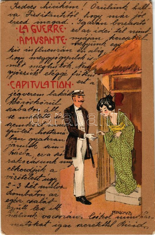 1901 La Guerre Amusante. Capitulation art postcard. Art Nouveau, litho s: M. Raschka (Raphael Kirchner) (EK)