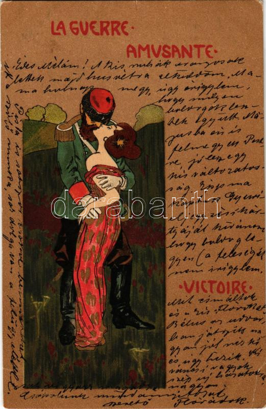 1901 La Guerre Amusante. Victoire art postcard. Art Nouveau, litho s: M. Raschka (Raphael Kirchner) (szakadások / tears)
